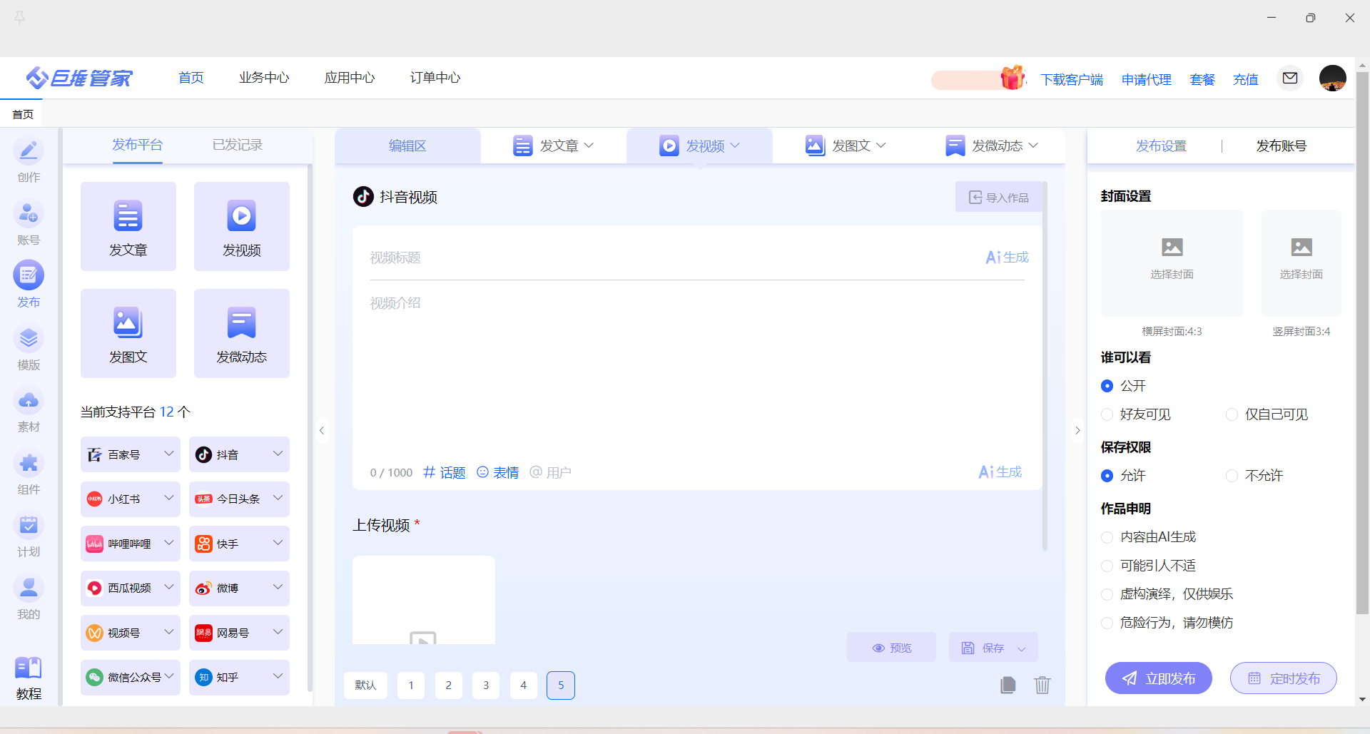 在短视频内容创作竞争日益激烈的今天,抖音定时发布软件已成为运营者提升效率、优化内容排期的核心工具。抖音定时发布软件哪个好?如何选择一款既能满足多平台管理需求,又能保障数据安全的工具,成为许多创作者和团队关注的焦点。本文将从功能需求、技术优势及使用场景等角度,为您解析这类工具的核心价值。